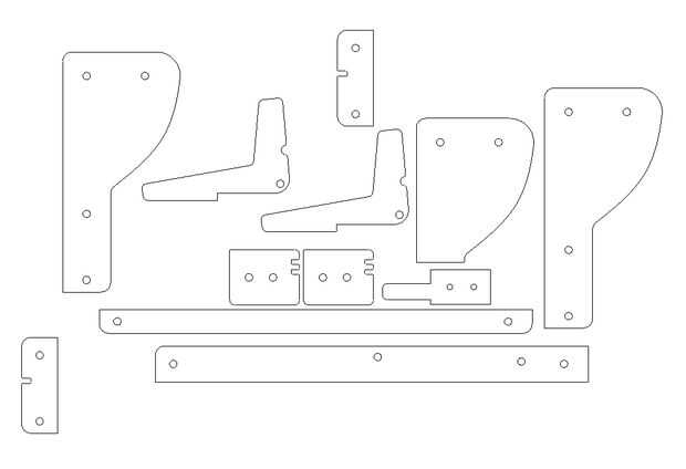 Antes del corte mi prototipo del laser que dibujé en el paquete de CAD que uso, Alibre Design. Esto dejó me tiro a un montaje completo para verificar todas las piezas caben y exportar ficheros DXF para el cortador del laser.