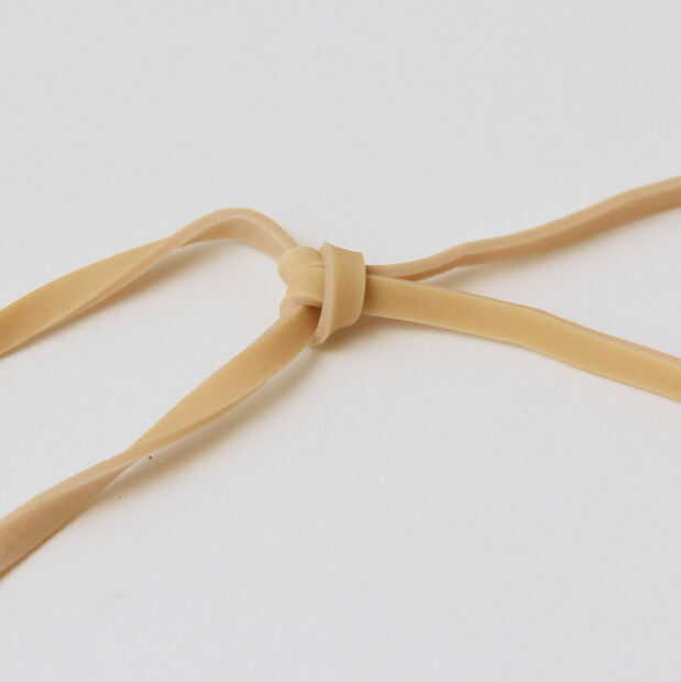 Pasar la cinta de goma alrededor de la frente, a través de las ranuras de la banda y hacia el émbolo en el otro lado.