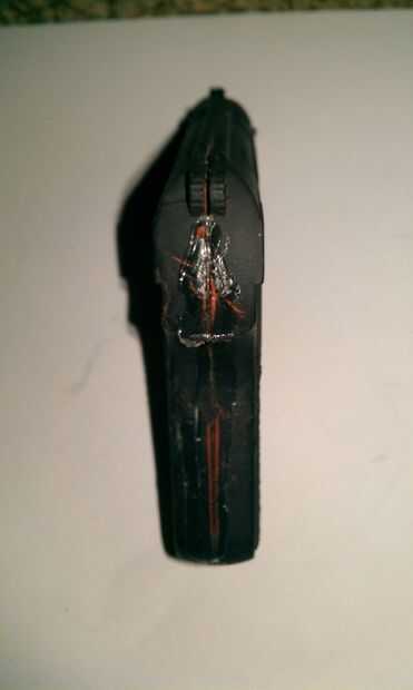 se trata de una pistola de juguete muerto de hambre que compré en una tienda local de dólar que llevó aparte y volver a pintar. Lo siento pero no tengo ninguna fotos de trabajo en progreso de él. Esta pistola de juguete era una pistola pop disparar