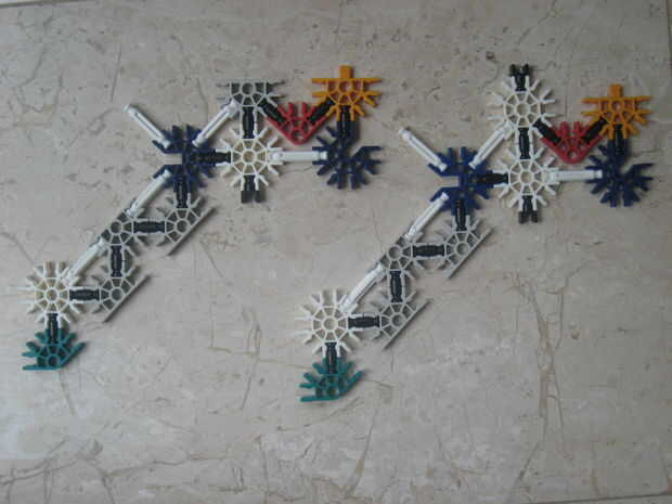 esta pequeña pistola K'nex es muy simple y utiliza solo 12 piezas (no incluye munición o una vista). No utiliza una banda elástica o bien.Paso 1: partes Arma:4 barras azul2 barras amarillas1 barra blanco2 conectores verdes1 conector amarillo3 conecto