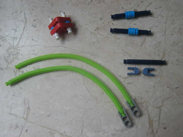 esta pequeña pistola K'nex es muy simple y utiliza solo 12 piezas (no incluye munición o una vista). No utiliza una banda elástica o bien.Paso 1: partes Arma:4 barras azul2 barras amarillas1 barra blanco2 conectores verdes1 conector amarillo3 conecto