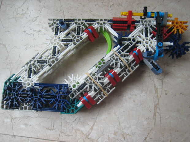 esta es mi arma favorita de K'nex construido por la propia. es una foto única pero puede ser muy potente dependiendo de cuántas gomas le agregue es el mecanismo de disparo. Me gusta porque hace buen uso de piezas de flex. Trabajar la pistola tirando