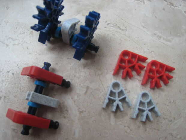 esta pequeña pistola K'nex es muy simple y utiliza solo 12 piezas (no incluye munición o una vista). No utiliza una banda elástica o bien.Paso 1: partes Arma:4 barras azul2 barras amarillas1 barra blanco2 conectores verdes1 conector amarillo3 conecto