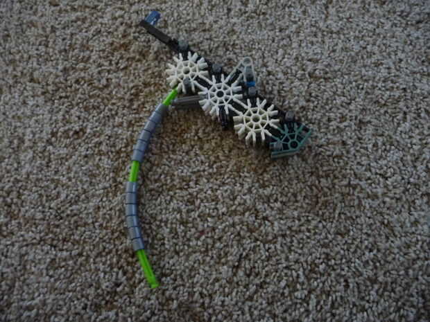 esta es mi arma favorita de K'nex construido por la propia. es una foto única pero puede ser muy potente dependiendo de cuántas gomas le agregue es el mecanismo de disparo. Me gusta porque hace buen uso de piezas de flex. Trabajar la pistola tirando