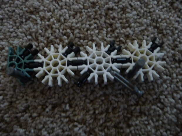 esta pequeña pistola K'nex es muy simple y utiliza solo 12 piezas (no incluye munición o una vista). No utiliza una banda elástica o bien.Paso 1: partes Arma:4 barras azul2 barras amarillas1 barra blanco2 conectores verdes1 conector amarillo3 conecto