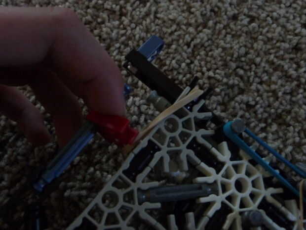 esto es un arma poderoso de K'nex que tira alambre munición con una banda elástica.Paso 1: materiales Necesita K'nex piezas, cinta adhesiva, una banda de goma, una pieza plana de plástico y un pin de ropa o clip.Paso 2: marco Construir ambas estas pi