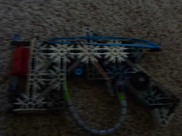 esta es el arma de K'nex construyó en un día o dos. No copio cualquier diseño si es lo que estabas pensando.No es automático, pero da un crapload de poder, ya que es un tipo de Tirachinas de pistola en lugar de un carnero.juego de instrucciones instr