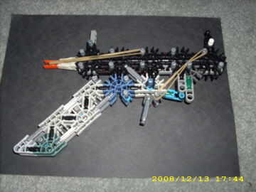 esta es mi arma favorita de K'nex construido por la propia. es una foto única pero puede ser muy potente dependiendo de cuántas gomas le agregue es el mecanismo de disparo. Me gusta porque hace buen uso de piezas de flex. Trabajar la pistola tirando