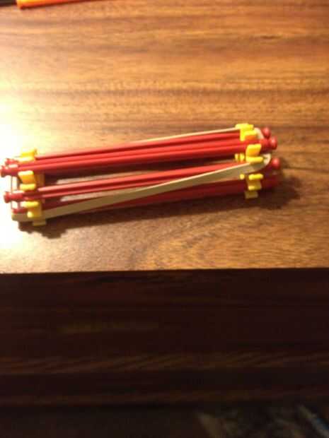 esto es un arma poderoso de K'nex que tira alambre munición con una banda elástica.Paso 1: materiales Necesita K'nex piezas, cinta adhesiva, una banda de goma, una pieza plana de plástico y un pin de ropa o clip.Paso 2: marco Construir ambas estas pi