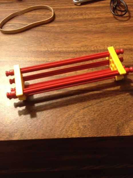 esto es un arma poderoso de K'nex que tira alambre munición con una banda elástica.Paso 1: materiales Necesita K'nex piezas, cinta adhesiva, una banda de goma, una pieza plana de plástico y un pin de ropa o clip.Paso 2: marco Construir ambas estas pi