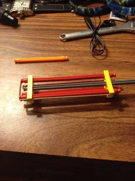 esta es el arma de K'nex construyó en un día o dos. No copio cualquier diseño si es lo que estabas pensando.No es automático, pero da un crapload de poder, ya que es un tipo de Tirachinas de pistola en lugar de un carnero.juego de instrucciones instr