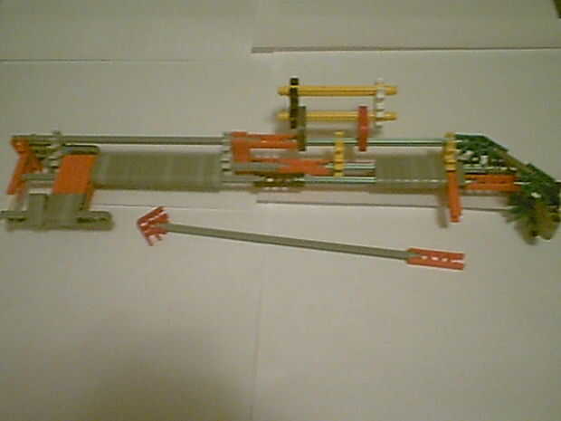 Un cañón que sólo utiliza barras de KVG con mayor precisión para la pistola KillerK Knex.Paso 1: Reúna los suministros.Paso 2: Comenzar a construir. Tomar dos piezas largas gris y comenzar a añadir piezas del triángulo rojo.Paso 3: Construcción de la