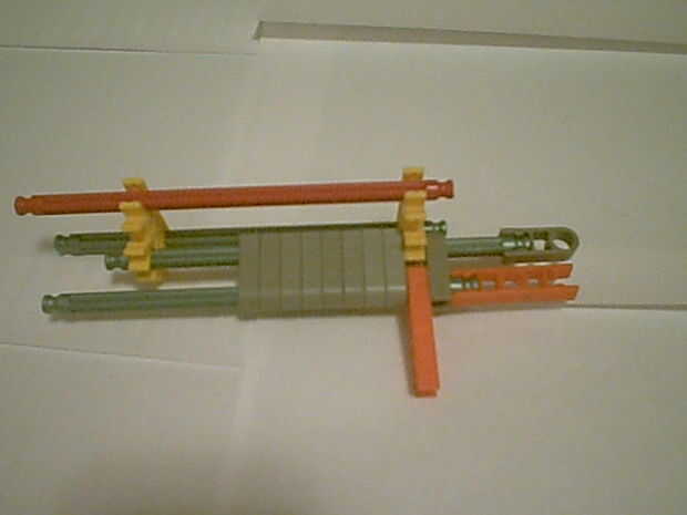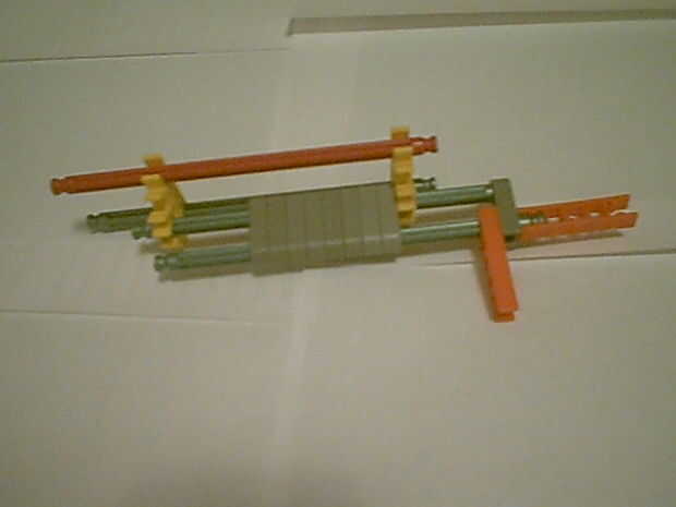 Un cañón que sólo utiliza barras de KVG con mayor precisión para la pistola KillerK Knex.Paso 1: Reúna los suministros.Paso 2: Comenzar a construir. Tomar dos piezas largas gris y comenzar a añadir piezas del triángulo rojo.Paso 3: Construcción de la