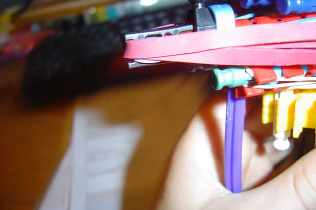 esta es un arma de KVG que usted puede hacer si no tienes muchas piezasPaso 1: Reunir las piezas para hacer el arma que vas a necesitarmango2 conectores verdes2 barras verdesbarra azul 14 conectores de púrpuraCañón3 barras rojas2 barras amarillas2 ba