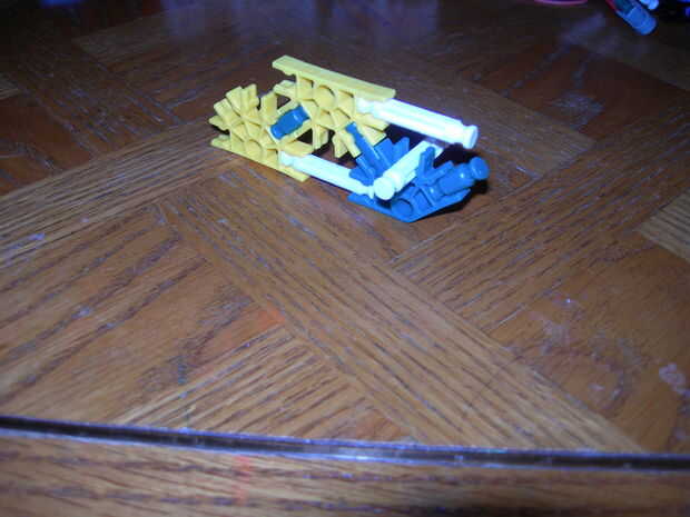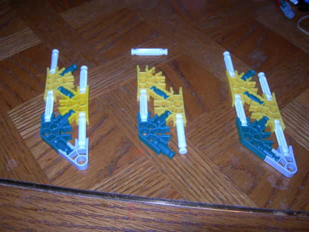 esta es un arma de KVG que usted puede hacer si no tienes muchas piezasPaso 1: Reunir las piezas para hacer el arma que vas a necesitarmango2 conectores verdes2 barras verdesbarra azul 14 conectores de púrpuraCañón3 barras rojas2 barras amarillas2 ba