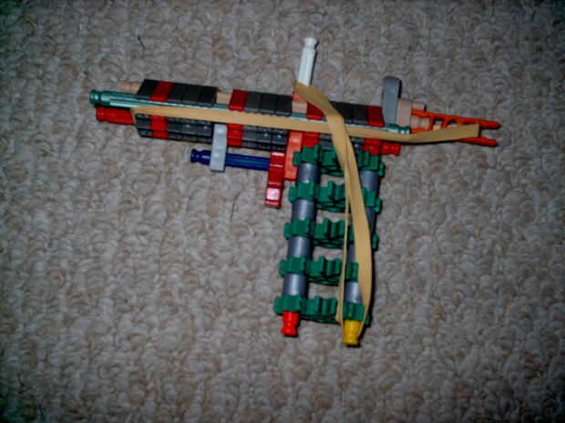 esta es un arma fuerte KVG. Puede tirar nada de lo que cabe en el barril. Utiliza solamente pedazos de KVG básica y una buena banda de goma. Si utiliza barras azul como munición seguramente conseguirá su objetivo. Este es mi primer instructivo sea ta