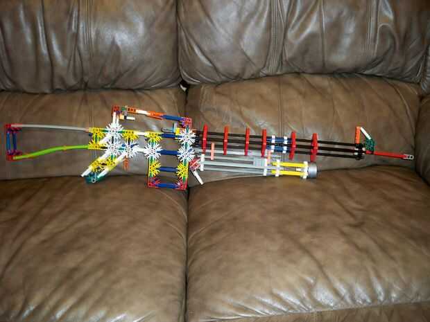 esta es un arma de KVG que usted puede hacer si no tienes muchas piezasPaso 1: Reunir las piezas para hacer el arma que vas a necesitarmango2 conectores verdes2 barras verdesbarra azul 14 conectores de púrpuraCañón3 barras rojas2 barras amarillas2 ba
