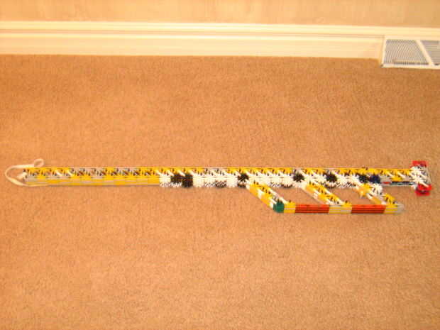 aquí es mi arma más reciente--me tomó unas 2 horas para hacer y otra hora para destruir (en un día) me puse muy triste cuando estuve probando causa pensé que iría aproximadamente 200 pies pero sólo tengo alrededor de 120 pies = (sin instrucciones se publicarán lo llevé aparte el día que hice