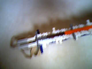 esta es una de las pistolas más pequeñas cada vez. Lo hice cuando llegué realmente aburrido un día. Realmente tiene un percutor y un gatillo! La pistola entera mide aproximadamente 2 pulgadas. Puede disparar pequeños pedazos verdes o blancos. Preferi