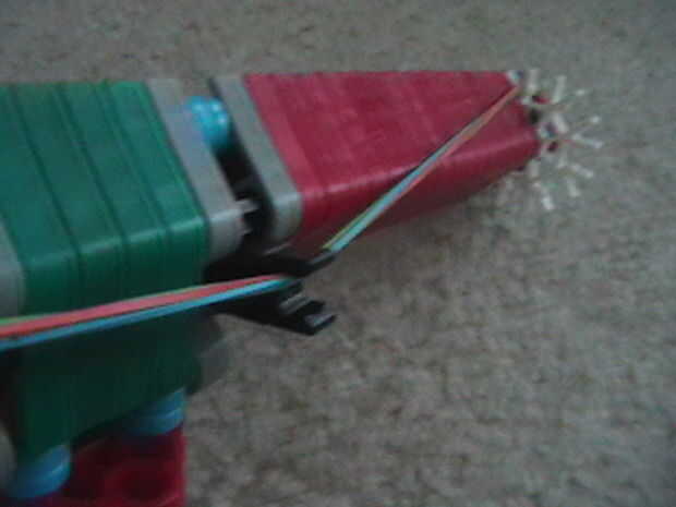 esta es una de las pistolas más pequeñas cada vez. Lo hice cuando llegué realmente aburrido un día. Realmente tiene un percutor y un gatillo! La pistola entera mide aproximadamente 2 pulgadas. Puede disparar pequeños pedazos verdes o blancos. Preferi