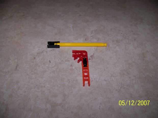 una pistola KVG pequeño que tiene una gama de moderat y utiliza 17 piezas. Dispara pequeñas verde o negro clavijas y es muy compacto.¡ Disfrute!Paso 1: reunir los materiales estas piezasPaso 2: montar la baqueta de fusil hacer esta piezaPaso 3: afile
