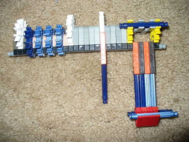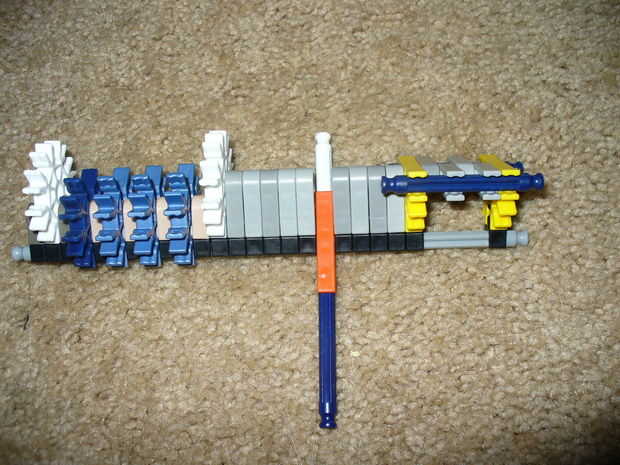 esta es un arma de KVG que usted puede hacer si no tienes muchas piezasPaso 1: Reunir las piezas para hacer el arma que vas a necesitarmango2 conectores verdes2 barras verdesbarra azul 14 conectores de púrpuraCañón3 barras rojas2 barras amarillas2 ba