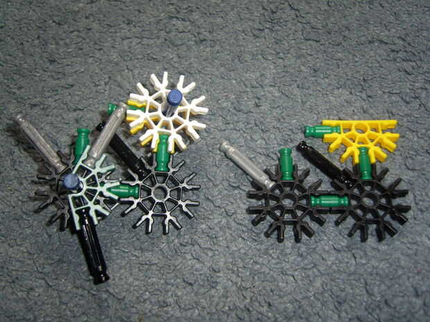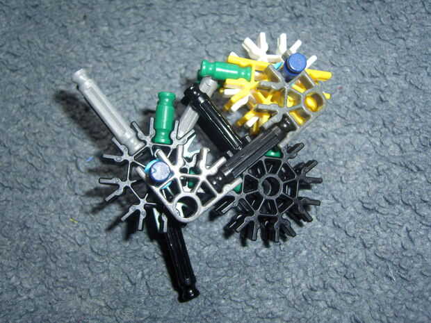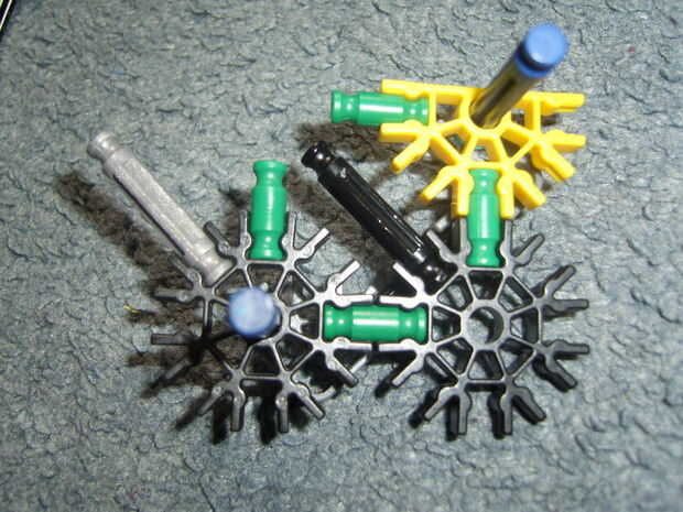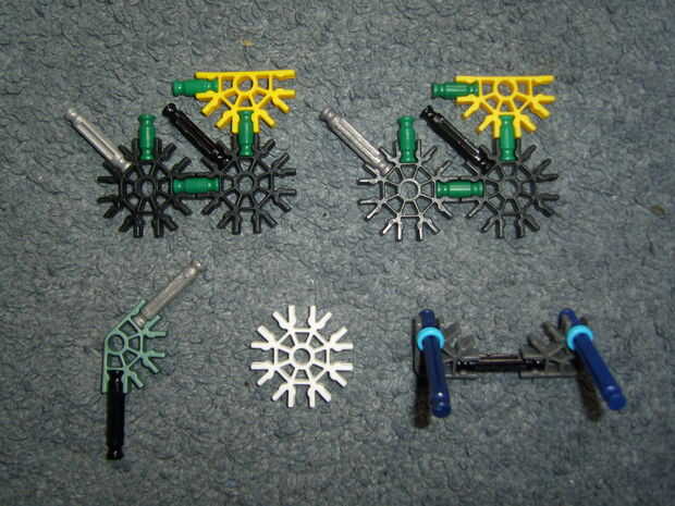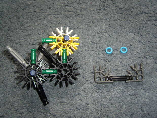 esta es un arma de KVG que usted puede hacer si no tienes muchas piezasPaso 1: Reunir las piezas para hacer el arma que vas a necesitarmango2 conectores verdes2 barras verdesbarra azul 14 conectores de púrpuraCañón3 barras rojas2 barras amarillas2 ba