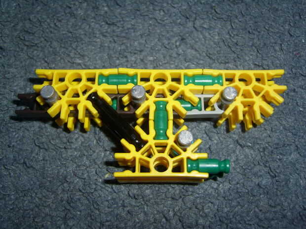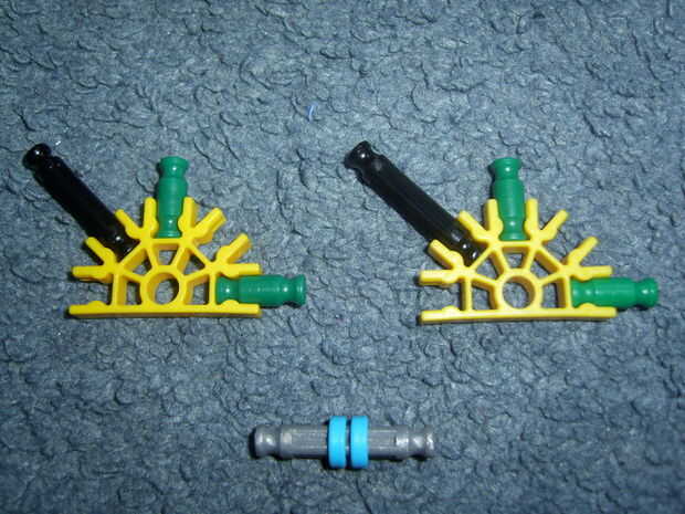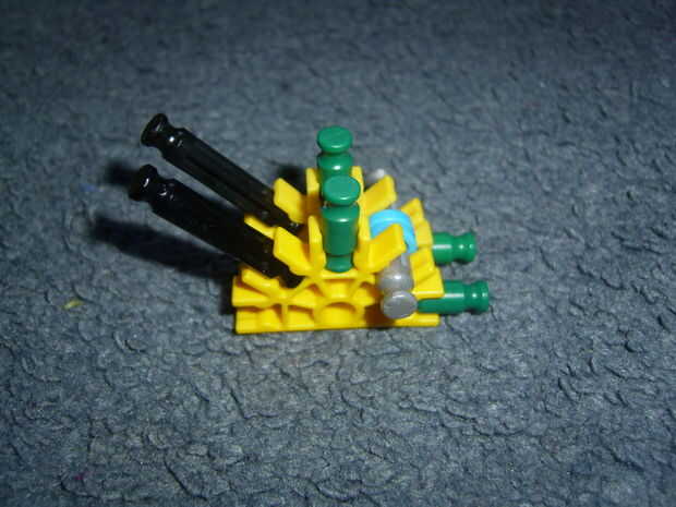 esta es un arma de KVG que usted puede hacer si no tienes muchas piezasPaso 1: Reunir las piezas para hacer el arma que vas a necesitarmango2 conectores verdes2 barras verdesbarra azul 14 conectores de púrpuraCañón3 barras rojas2 barras amarillas2 ba