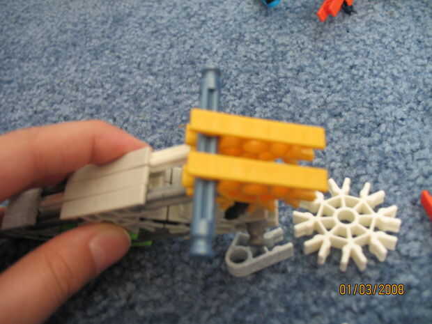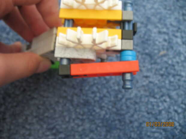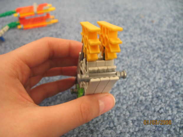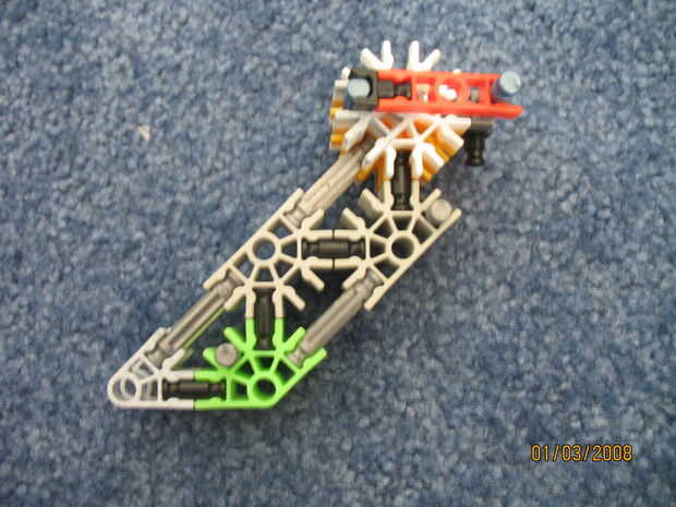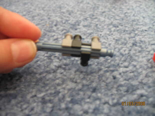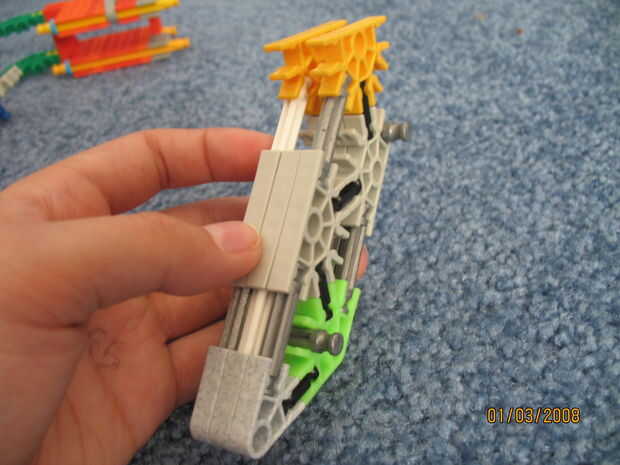 esta es un arma de KVG que usted puede hacer si no tienes muchas piezasPaso 1: Reunir las piezas para hacer el arma que vas a necesitarmango2 conectores verdes2 barras verdesbarra azul 14 conectores de púrpuraCañón3 barras rojas2 barras amarillas2 ba
