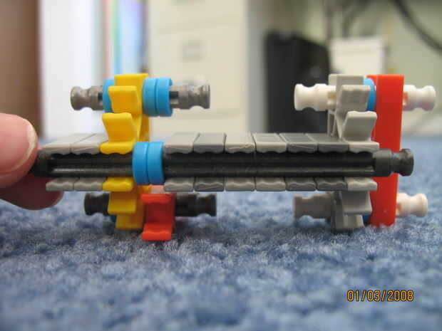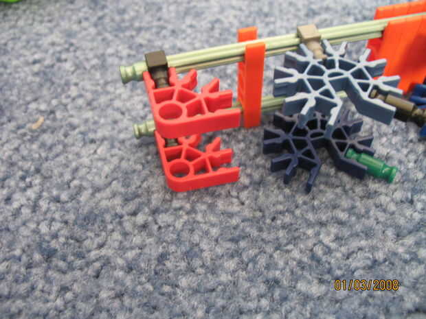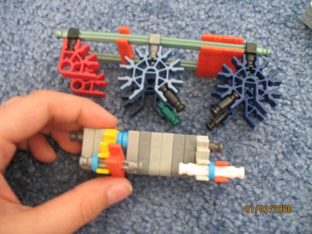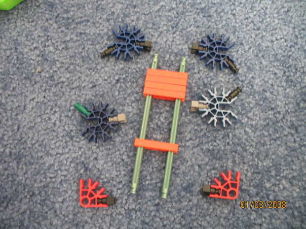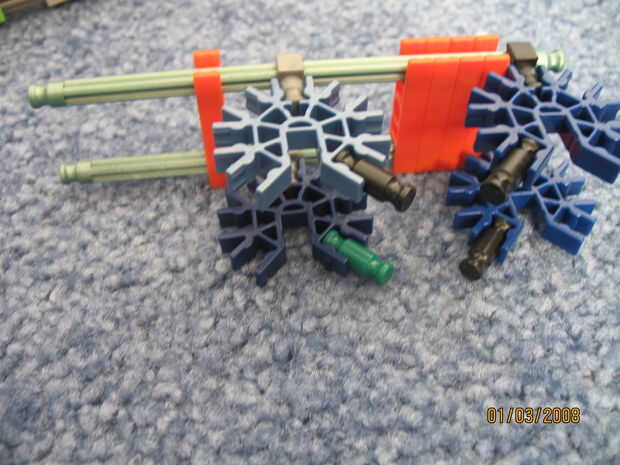 esta es un arma de KVG que usted puede hacer si no tienes muchas piezasPaso 1: Reunir las piezas para hacer el arma que vas a necesitarmango2 conectores verdes2 barras verdesbarra azul 14 conectores de púrpuraCañón3 barras rojas2 barras amarillas2 ba