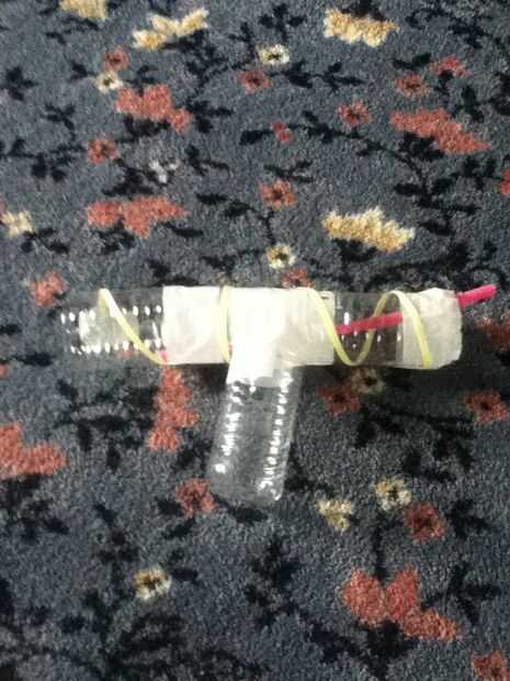 una pistola de Copa pequeña, bajo consumo de una botella de plástico, un tubo de metal de una manija de la fregona y una encendedor de barbacoa.Disclaimerama: este es probablemente el más peligroso de mi Instructables hasta la fecha. Están improvisan