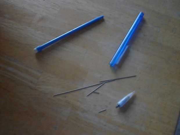 Para este proyecto necesitamos:-un lápiz mecánico (para cable de 2,5 mm de diámetro).-un rayo de moto con 2,5 mm de diámetro (lucky me: D, es el mismo diámetro de la mina de lápiz).Es muy fácil de hacer este proyecto, todo lo que necesitas hacer es:-