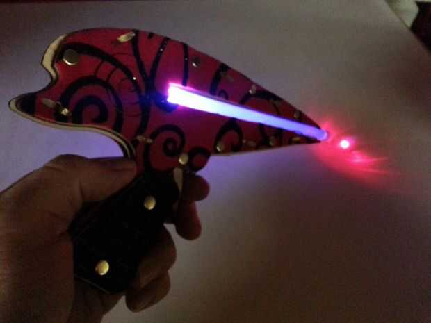 Esta Pistola láser de vapor Punk fácilmente se hace de cartón, fieltro, sujetadores de papel, un LED y una pajita de plástico. Hemos hecho estos de la Feria de mundo de Punk de vapor. Look fantástico y son fáciles de construir. Puede construir esto en una noche corta y tenerlo listo para cualquier traje. Se hace un compañero perfecto para cualquier traje de Sci-Fi o steampunk y sólo te costará unos cuantos dólares.