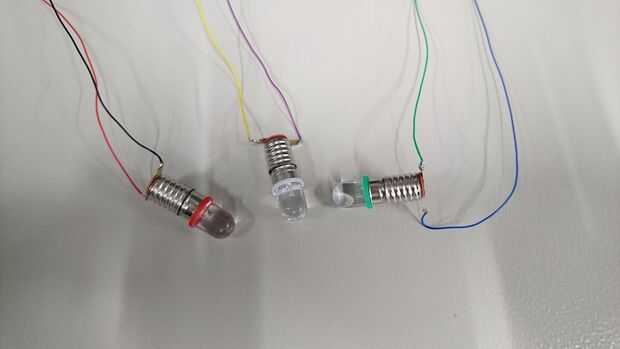 1. soldar los cables y bombillas de luz LED, suficientes hilos para sacan entre bulbos y tira Junta de la reserva.