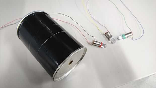 2. taladrar un agujero pequeño en el fondo del vacío puede y fijar los bulbos con masilla de energía