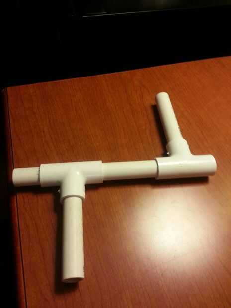 usted necesita:1 - 7" 1/2" PVC tubo6 - 3" piezas de 1/2" PVC tubo de2-1/2 902 - 1/2 T2 - 1/2 casquillosMini malvaviscosNota: utilicé toallas de papel para cubrir las manijas.Paso 1: Unir las piezas Establecer uno 3" y conectarse u