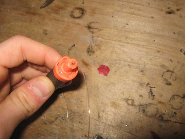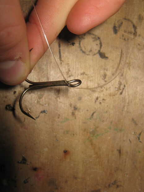 Atar el anzuelo a la línea que está pegando en la parte delantera de la bala.