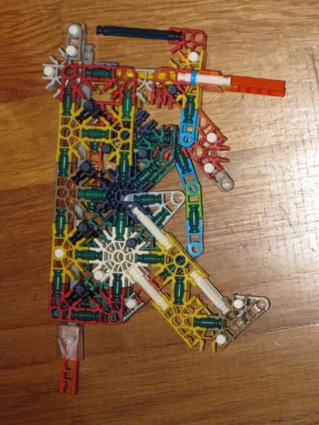 bueno esta es mi pistola de oodammo k'nex,es mi diseño tiene buen alcance10 disparos mag,no dude en hacer mods.y pedir las instrucciones