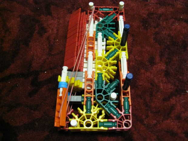 bueno esta es mi pistola de oodammo k'nex,es mi diseño tiene buen alcance10 disparos mag,no dude en hacer mods.y pedir las instrucciones