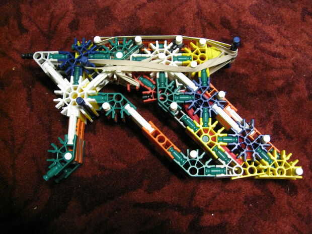 bueno esta es mi pistola de oodammo k'nex,es mi diseño tiene buen alcance10 disparos mag,no dude en hacer mods.y pedir las instrucciones