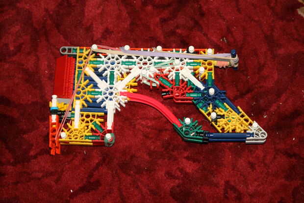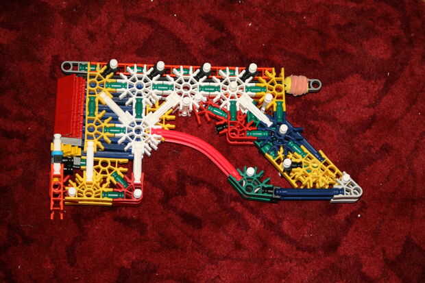 bueno esta es mi pistola de oodammo k'nex,es mi diseño tiene buen alcance10 disparos mag,no dude en hacer mods.y pedir las instrucciones