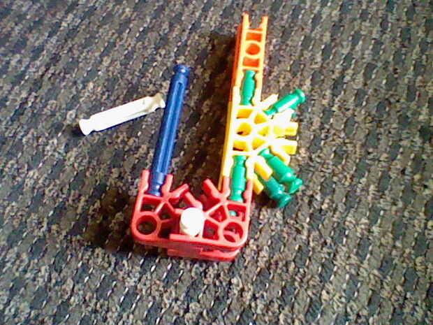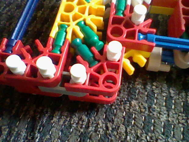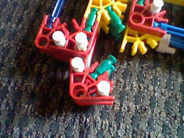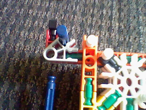 4. poner una barra blanca a través del agujero y luego conecte el gris oscuro de allí.