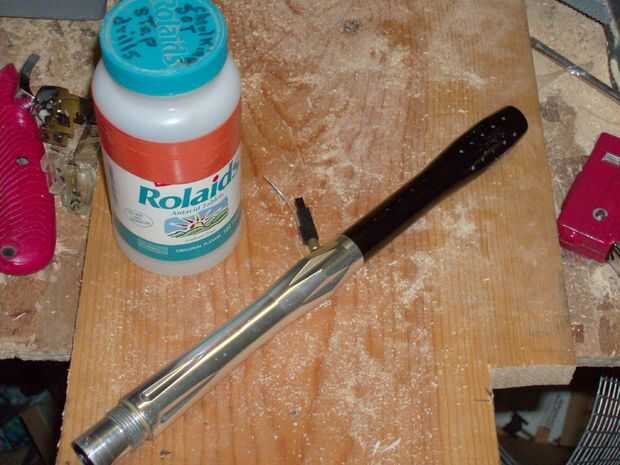 Necesita: botella vacía del antiácido, interruptor de encendido eléctrico piezoeléctrico del cañón de una pistola de paintball, alfombras bordadas, cinta aislante y agujerear con una broca de paso.
