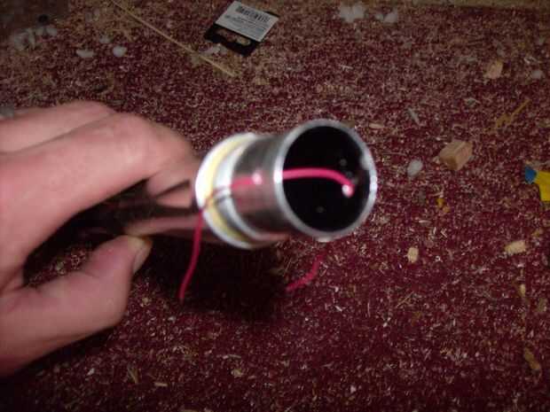 Empuje el cilindro en el agujero perforado en la parte inferior de la botella de antiácido. Asegúrese que los cables están pegando a través y cortar el extra.