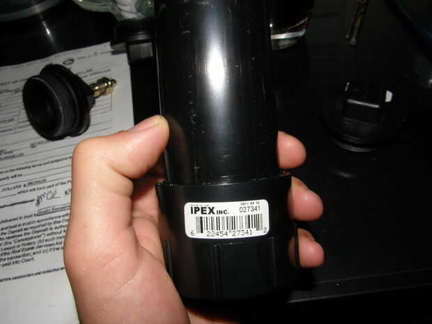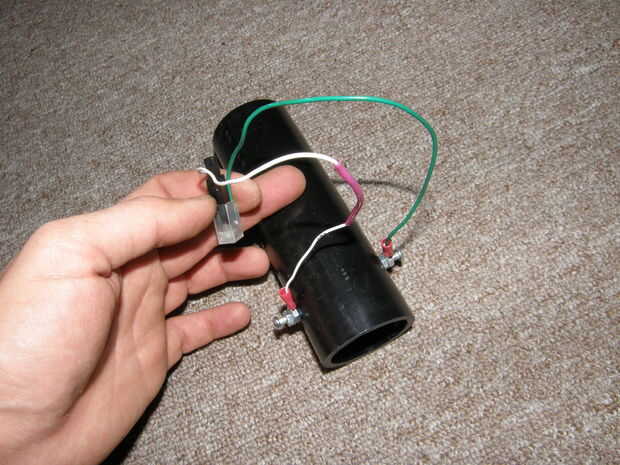 Este es el 1 1/2""limpieza montaje visto desde el lado. Necesita perforar directamente a través de la tubería de ABS como cerca de este conjunto como sea posible, dejando suficiente espacio para permitir las conexiones de cables. La segunda foto es de la ignición piezoeléctrica de la primera generación pero la instalación del electrodo es la misma... Se puede ver en esta foto cómo conexiones crimp automotriz pueden ser utilizados para los electrodos.