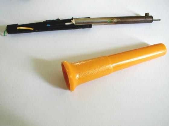 Así que tomó aparte un viejo soldador y corte por el cañón para hacer una caja corta para el elemento de calefacción. Desafortunadamente, el elemento era un poco demasiado alto para caber enteramente dentro del barril, así que tuve que cortar una ranura en la parte superior; bien equipado aunque.