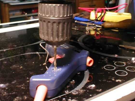 Quitar la carcasa de la pistola de pegamento. Tal vez encuentre que tiene tornillos de 'prueba'; mientras que usted podría hacer su propio pedacito de destornillador (como en hacer Vol. 3), me llevó la opción fácil y taladrar los tornillos. Asegúrese de que la pistola encoladora no conectado si haces esto, lo más cerca de la red de cable puede ser envuelto por los jefes del tornillo.