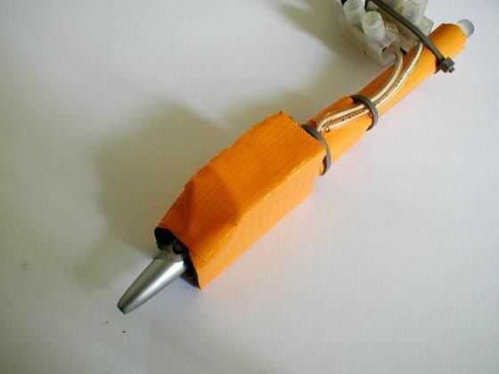 Los resultados no fueron grandes. La longitud del cañón hizo difícil estirar un dedo al extremo para empujar el palillo del pegamento-estaba bien cuando había un poco sobresale (como en estas fotos) pero cuando un nuevo palo estaba en lugar detrás de un viejo, no había ninguna forma fácil de empujar y sostener los apretones del dedo pulgar al mismo tiempo. También, aunque el aislamiento no llegar lo suficientemente caliente como para quemar mis dedos, todavía era demasiado caliente para sostener cómodamente después de un tiempo.