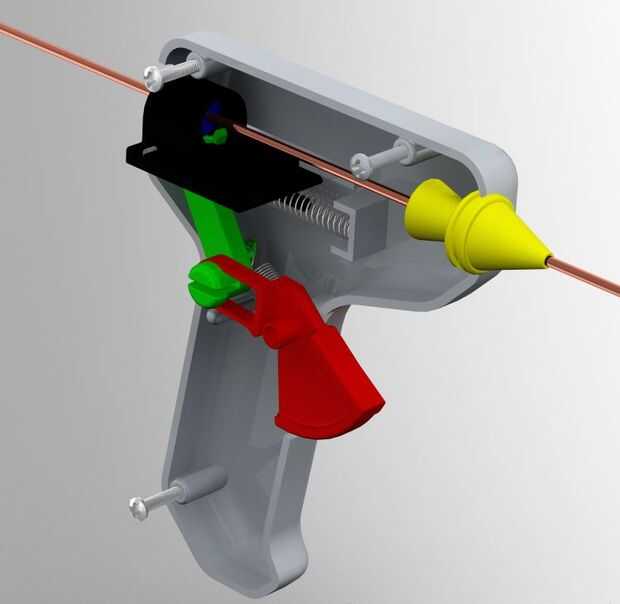 El trinquete pistola es una pistola dispensadora de varilla de relleno para soldadura TIG. El objetivo de la pistola de trinquete es permitir a principiantes en control fácil de dispensar la varilla de soldadura TIG. Este documento le informará el uso específico del producto y los diferentes componentes del producto. La original pistola encoladora a rayas del cable de alimentación del estirador de calor pegamento pistola, una bisagra y un pasador de la bisagra para convertirlo en el arma de ratchet. Dependiendo del tamaño del uso de la barra de relleno, una impresora 3D construirá una boquilla con las dimensiones permitidas para la varilla que se dispense. La pistola de trinquete será envolver en papel de aluminio que a prueba de calor contra la antorcha. El arma de Ratchet es un nuevo producto en el mercado que ayudará a los principiantes, así como mantenerlos a salvo de la antorcha de soldadura.
