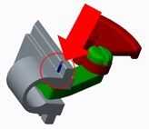 Empuje el perno hacia atrás en la botella con el alfiler o un clip. El gatillo, regulador y bisagra deben mirar como se ve a la izquierda.